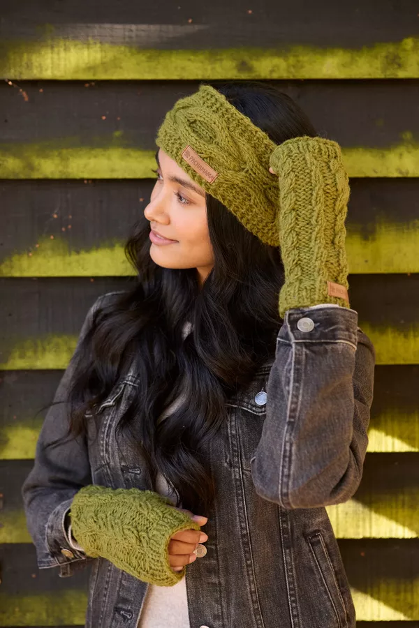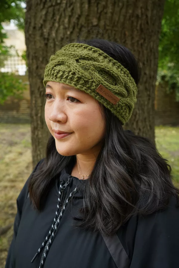 Women's hand knitted wool headband and ear warmer, classic cable knit , fair trade and handmade in Nepal.