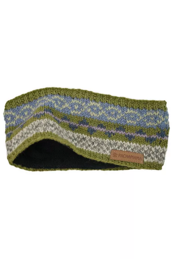 Women's hand knitted wool fairisle headband and ear warmer, with colourful fair isle patterns. Fair trade and handmade in Nepal.