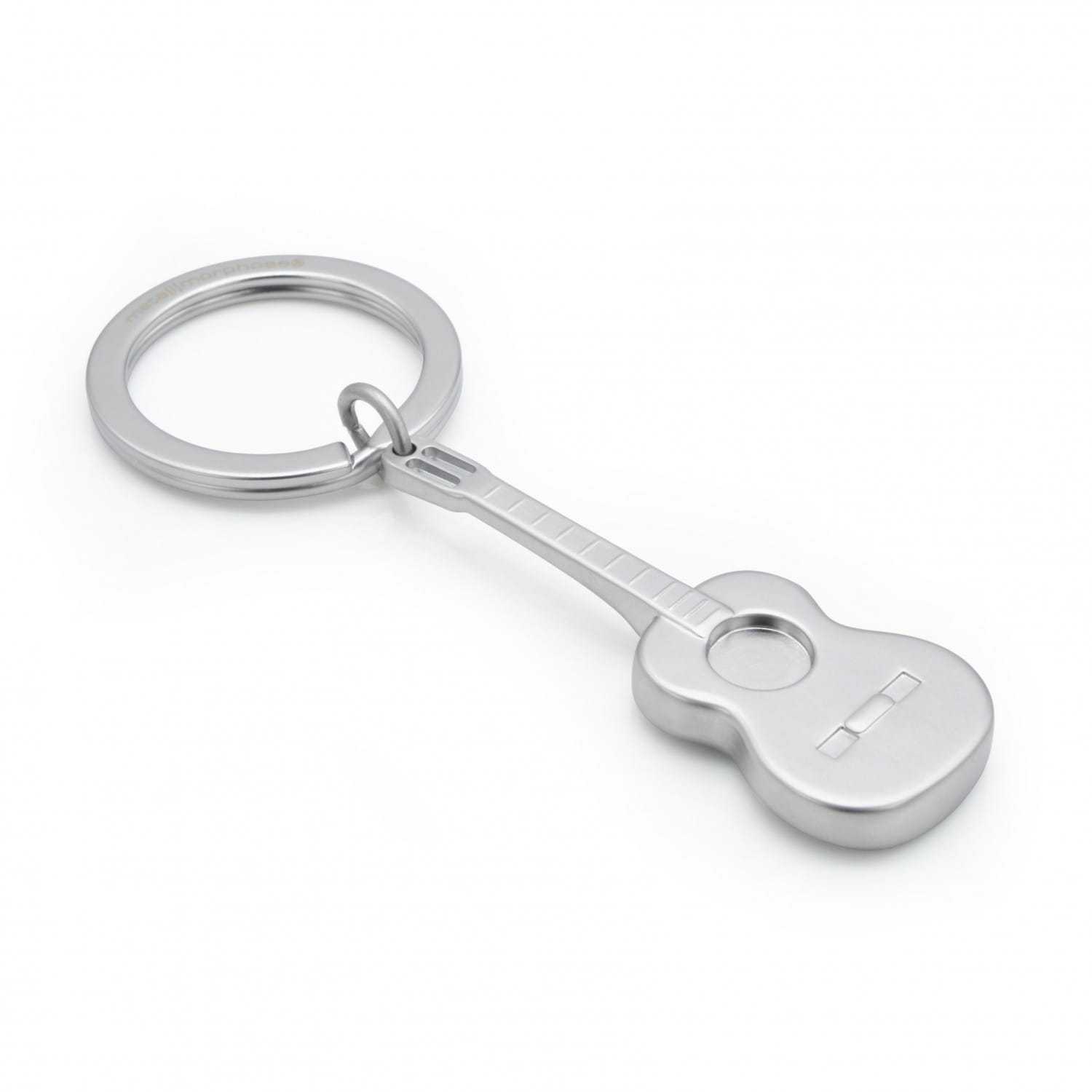 Know someone who loves playing guitar? Get them a gift that they can carry around with this matte silver guitar keyring from Metalmorphose. Made from durable zinc and chrome this keyring clips easily onto keys or bags.