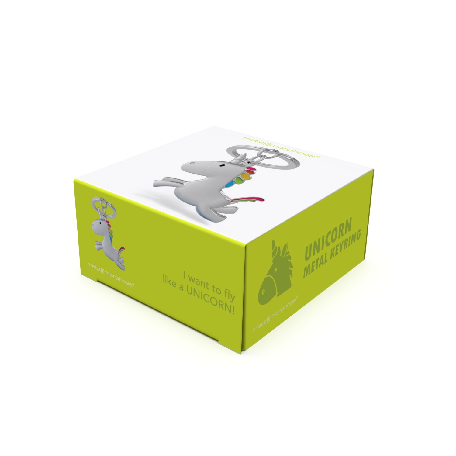 Jump and prance around with this friendly unicorn from Metalmorphose. He’s solid chrome with some colourful resin in his magical mane and tail. Made from durable zinc and chrome this keyring clips easily onto keys or bags.