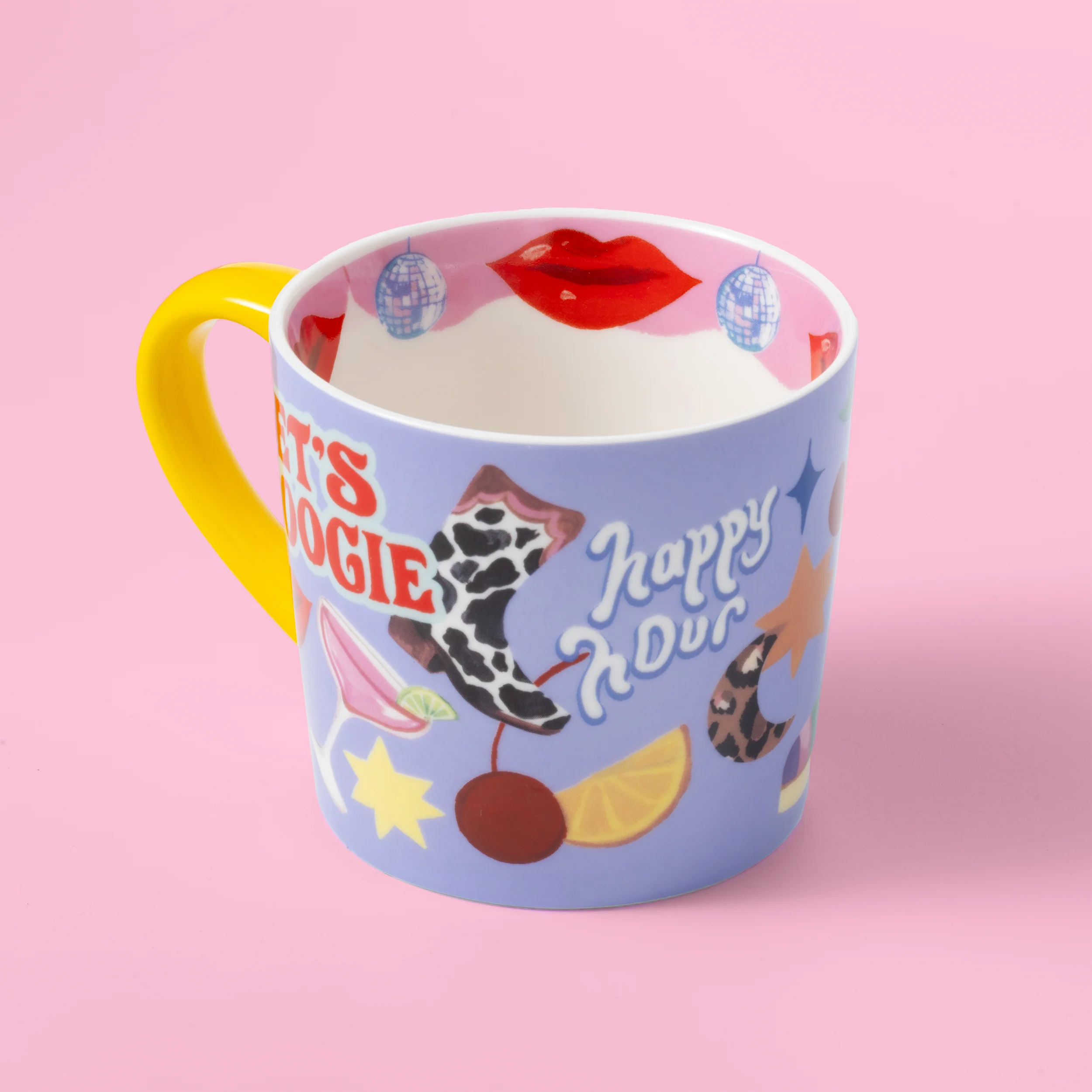 Turn your tea break into a dance break with the Kitchen Disco Mug. Featuring disco balls, cherries, cocktails, cowboy boots, and gold foil lettering that shouts Kitchen Disco, it’s made for the friend who throws shapes while the kettle boils. With “happy hour” and “let’s boogie” slogans plus a lip-smacking inner rim, it’s pure party-in-a-mug energy.