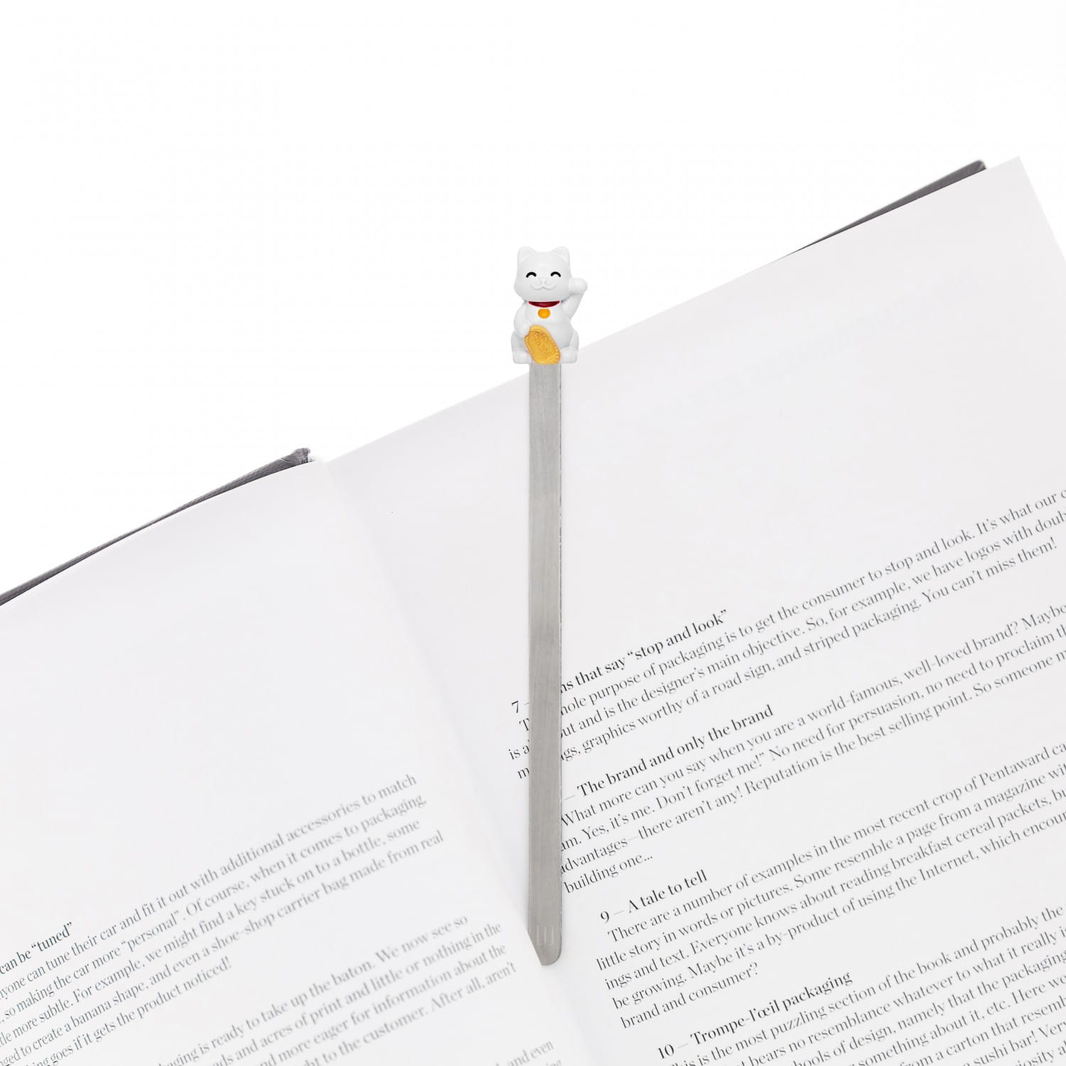 Still love the feel and smell of an actual book? Well keep your place in style with this 3D chrome bookmark from Metalmorphose. Keep luck by your side with this lucky cat bookmark from Metalmorphose