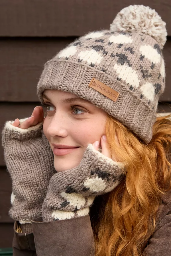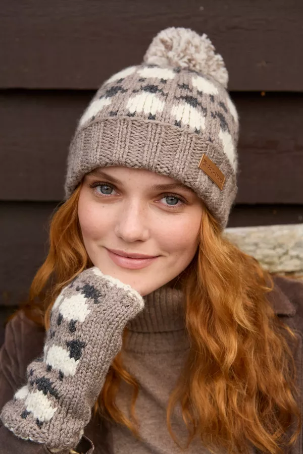 Pachamama Sheep (Merino) Handwarmers Mushroom – Flock of Sheep in Soft Pure Merino Wool. Unlined. Fair trade and handmade in Nepal.