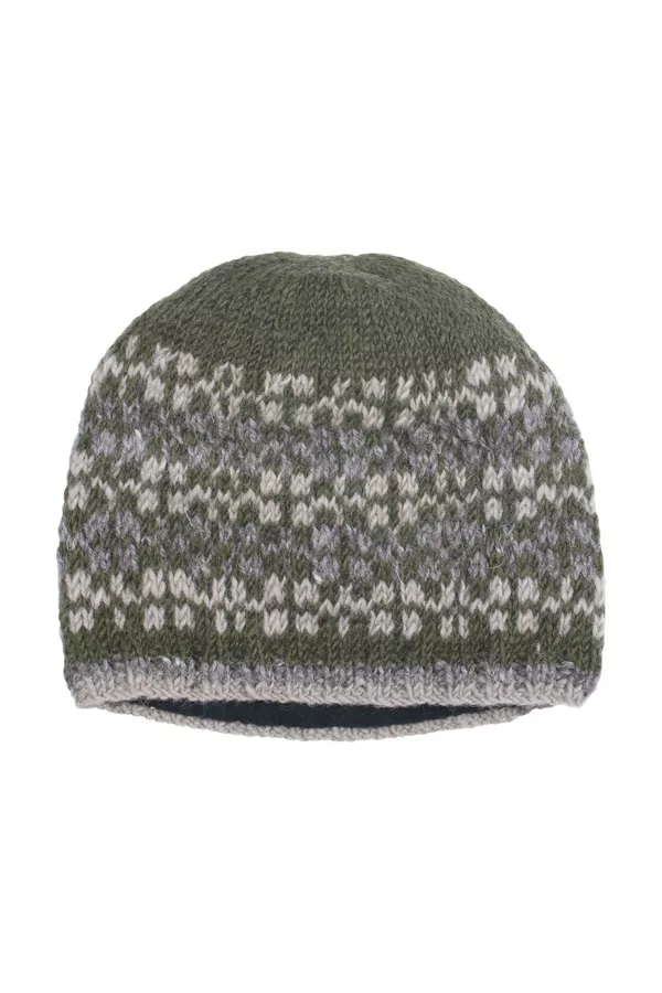 Pachamama Men's hand knitted wool beanie hat, perfect hat for the cold days and easy to pair with an outfit. Fair trade and handmade in Nepal.