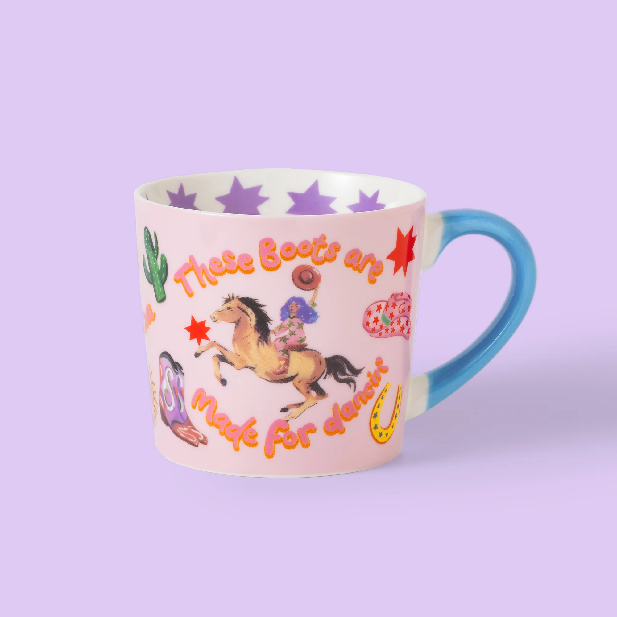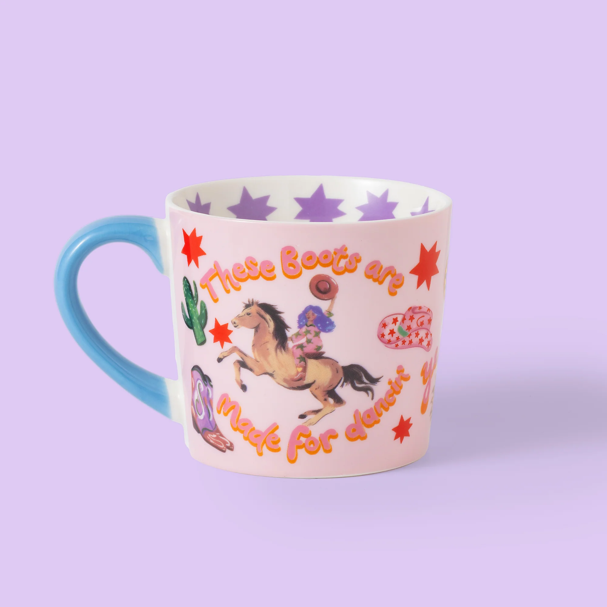 Kick up your heels with our These Boots Are Made For Dancing Mug! Featuring a fearless cowgirl ready for adventure, it’s sprinkled with playful western icons and starry details. This bold and charming mug is a daily reminder that life’s better when you dance through it – boots on, hat held high, and heart full. Perfect for dreamers, doers, and dancers at heart.