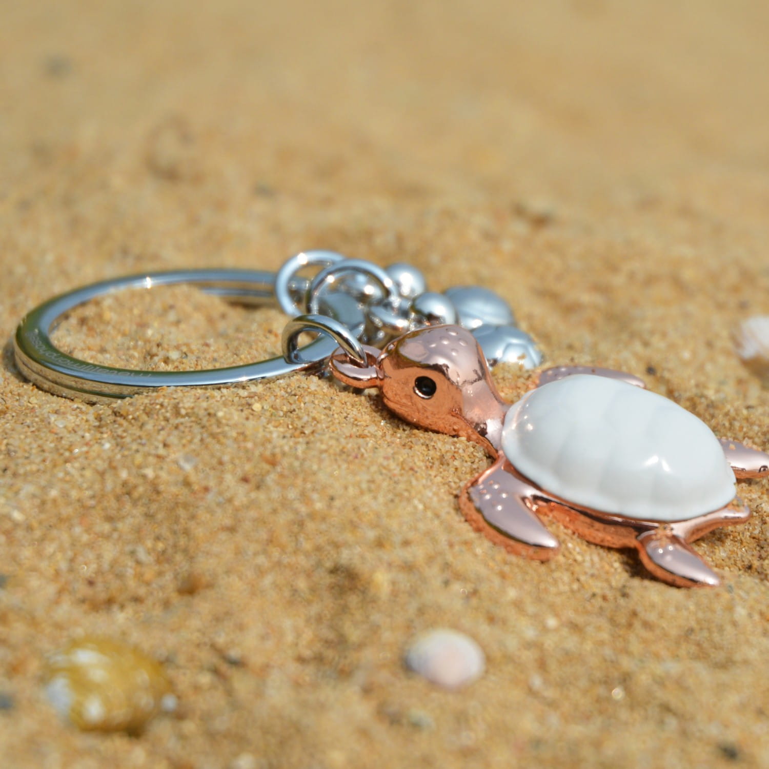 Unlock a sea of style with our White & Rose Gold Turtle Keyring from Metalmorphose. This adorable accessory not only keeps your keys secure but also adds a touch of oceanic elegance to your everyday adventures. Dive into chic functionality!
